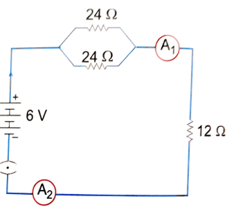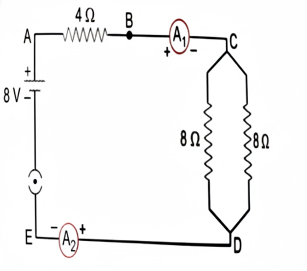 Therefore, ammeter A₁ (main current) and A₂ (branch current) will show different readings.