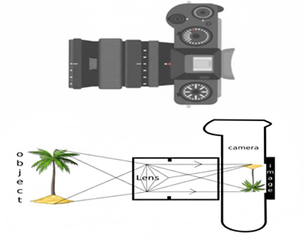 The above image is that of a Digital Single Lens Reflex (DSLR) Camera, which is used to take high-resolution photographs by professional photographers. The second image of the above two is a schematic diagram of how an image is formed on the sensor of the camera.