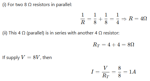 (i) Effective resistance of two 8 ohm resistors in the combination.
