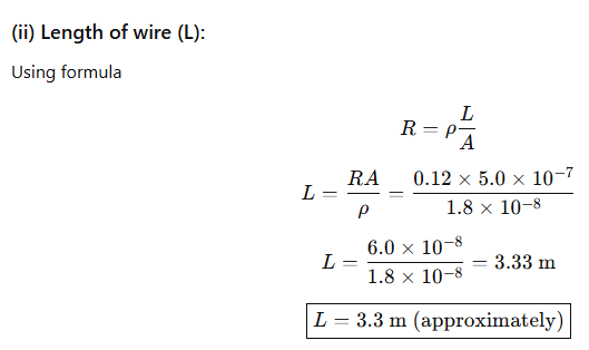 (ii) Calculate the length of wire required for the 0.12 Ω resistor.