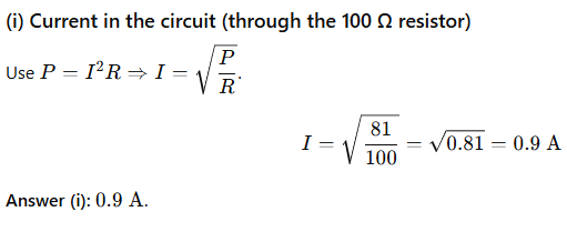 The power dissipation in the 100 Ω resistor is 81 W. Calculate: