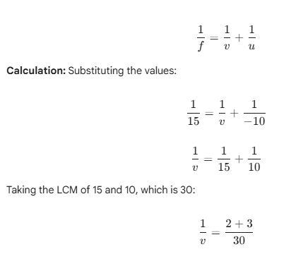 - Focal length of convex mirror, f = +15 cm