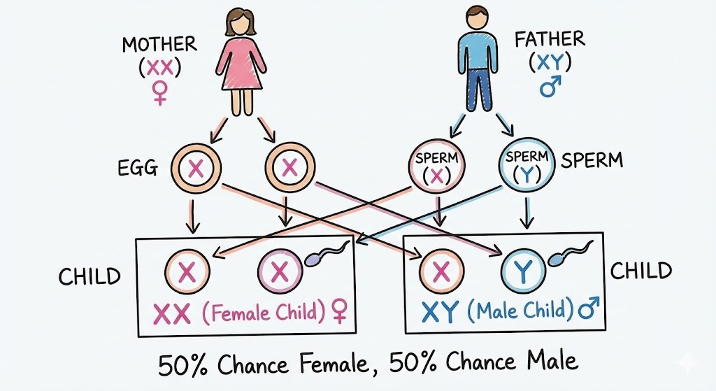 - If a sperm carrying an X chromosome fertilizes the egg, the child will be a girl (XX).