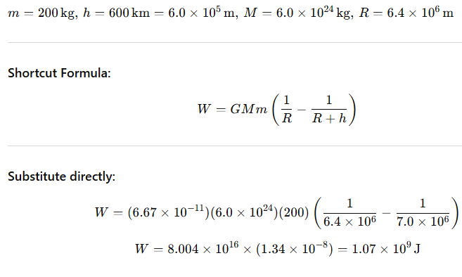 7.12 A satellite of mass 200 kg is lifted to a height of 600 km above the earth’s surface. Find the work done in lifting the satellite.