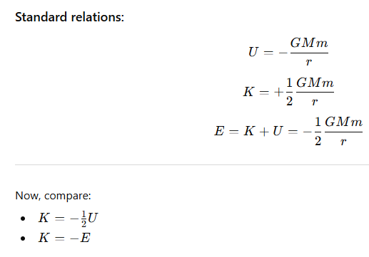 7.14 The kinetic energy of an artificial satellite is: 1/2 of its potential energy/1/2 of its total energy/equal to its total energy/negative of its total energy.