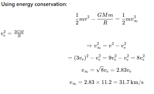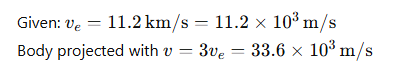 7.18 The escape speed of a projectile on the earth’s surface is 11.2 km /s . A body is projected out with thrice this speed. What is the speed of the body far away from the earth? Ignore the presence of the sun and other planets.
