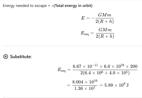Ans: The escape speed (ve) of a satellite from the surface of the Earth is given by the formula: ve = √(2 G M / R) where