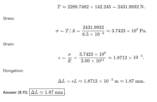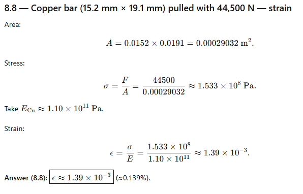 A copper piece (15.2 mm × 19.1 mm cross-section) is pulled with a 44,500 N force (elastic).