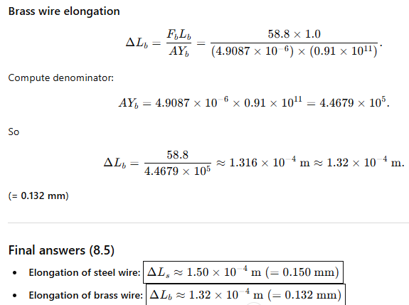 Two wires of diameter 0.25 cm (one steel, one brass) are loaded as in Fig. 8.11.
