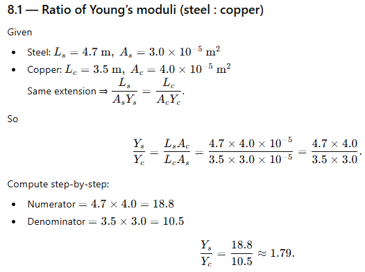 A steel wire of length 4.7 m and cross-sectional area 3.0×10⁻⁵ m² stretches by the same amount as a copper wire of length 3.5 m and cross-sectional area 4.0×10⁻⁵ m² under a given load.