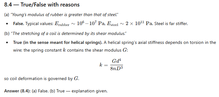 (a) The Young’s modulus of rubber is greater than that of steel.