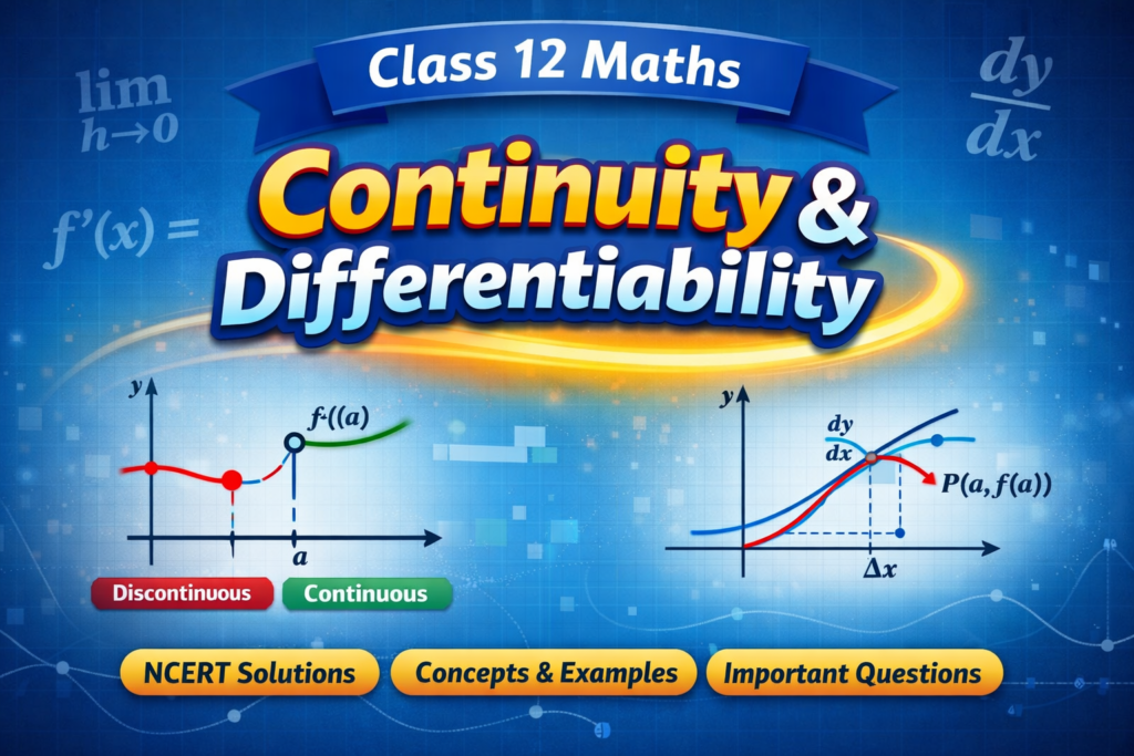 Class 12 Maths Continuity and Differentiability is an important chapter in Class 12 Maths that forms the base of calculus. In this chapter, students learn about continuous functions, differentiability, and their applications. Here, you will find NCERT solutions, solved examples, and important questions explained in a simple and clear way to help you understand concepts and score better in exams.