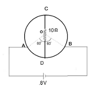 shown in the figure. A resistance of 10 ohms is connected to diametrically opposite ends C
