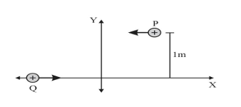 Q19. P and Q are two identical charged particles each of mass 4 × 10–26 kg and charge 4.8 × 10–19 C,