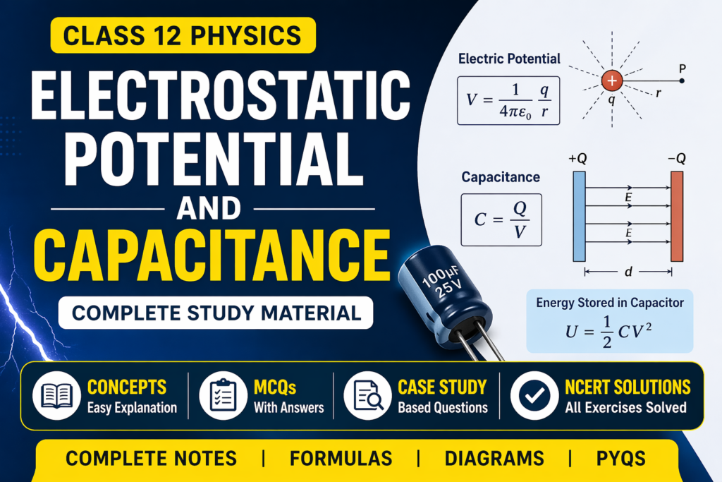 Electrostatic Potential Capacitance Class 12 is one of the most important topics in Physics for CBSE board exams and competitive exams like NEET and JEE. This chapter helps you understand how electric charges store energy, how potential is defined, and how capacitors work in real-life applications.