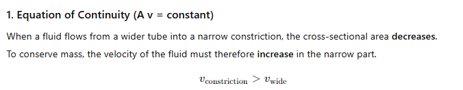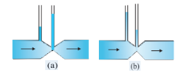 9.3 (d) For a fluid in steady flow, the increase in flow speed at a constriction follows conservation of mass.