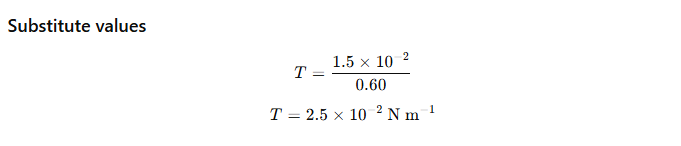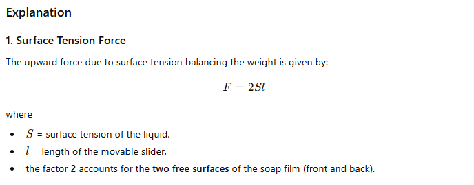 9.17 A U-shaped wire is dipped in a soap solution and removed. The thin soap film formed between the wire and the light slider supports a weight of 1.5 × 10 to the power minus 2 newton. The length of the slider is 30 cm. What is the surface tension of the film?