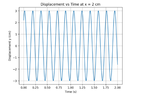 (d) Displacement at x = 30.0 cm and t = 20 s